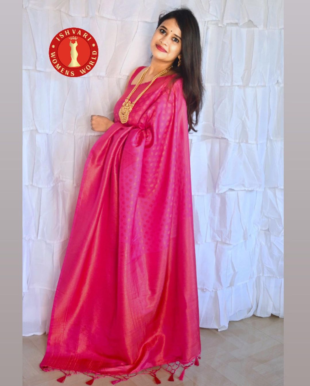 richness and pureness of Hot Pink soft silk saree